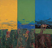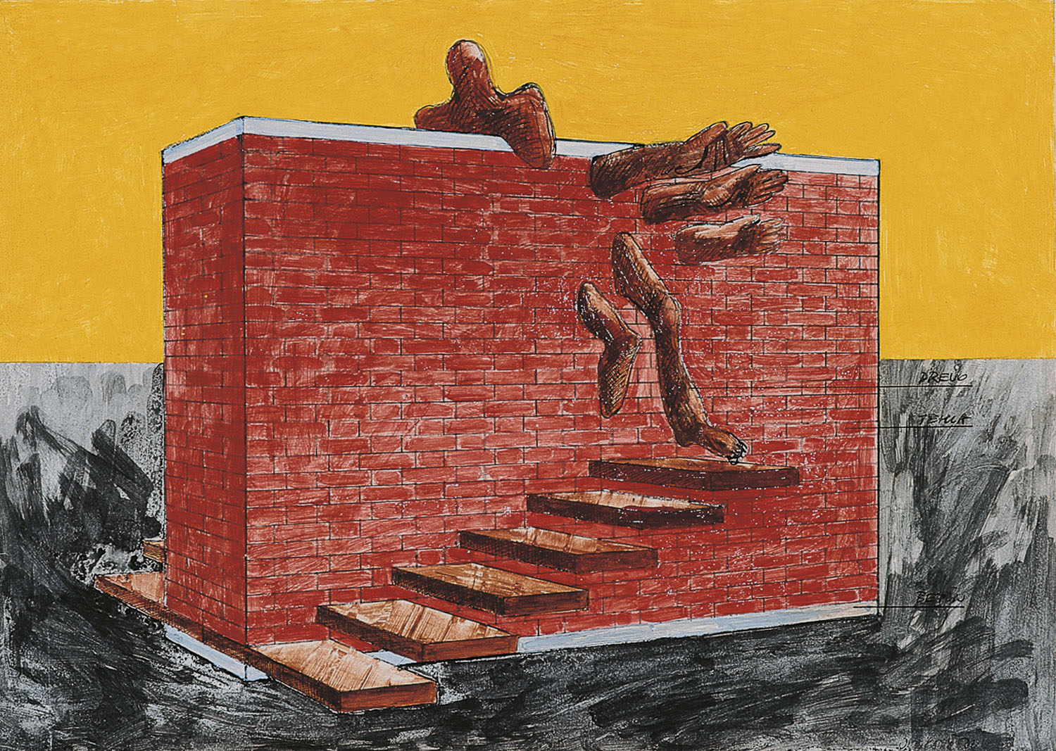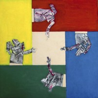Opening a window on the world and the penetration of abstraction into Slovak art in the early 1960s is inseparably associated with Jozef Jankovič. He became the leader of Confrontations, an avant-garde movement advocating abstract tendencies in art, Art Informel in particular. After this initial creative stage, figurative attributes became the main focus of his work, combined with found object in the spirit of Pop art assemblage, and blended with inspirations drawn from New Realism. In his spatial objects and compositions he created a specific figurative imagery which became the prototype of his work. His visual symbolism – enlarged and distorted human limbs – seems to be devoid of human content. This imagery further metamorphoses as the principal element of the changing visual idiom. His work was perceived as criticism and he subsequently lost the favour of the political regime because of his civil attitudes. Consequently, he was excluded from public exhibitions during the period of Normalisation. At that time he produced small-scale works on paper, developing conceptual projects and making jewellery. After a temporary isolation, his sculptural work developed into a monumental programme. Retaining his basic figurative attributes, he inventively exploited new forms of the visual language and the power of his artistic statement. Every sculptural composition is a warning against all kinds of usurpers striving to control people and the world. It is symbolically demonstrated by his famous Walking Monument – Room at the Top (1987) sited in the Olympic Park in Seoul, and other monuments.